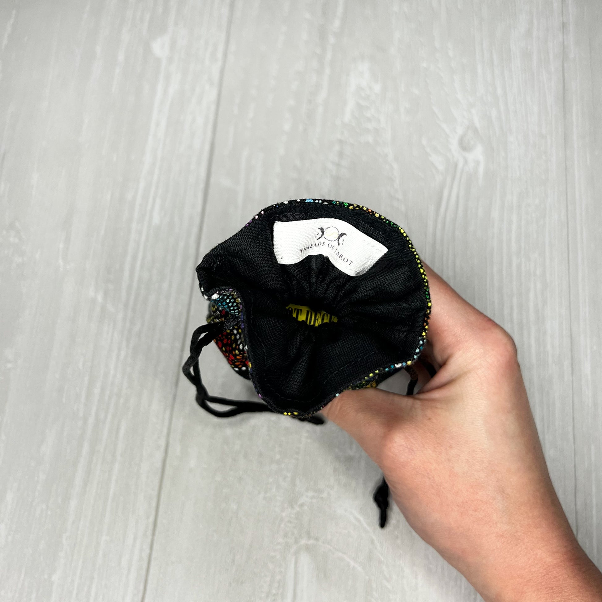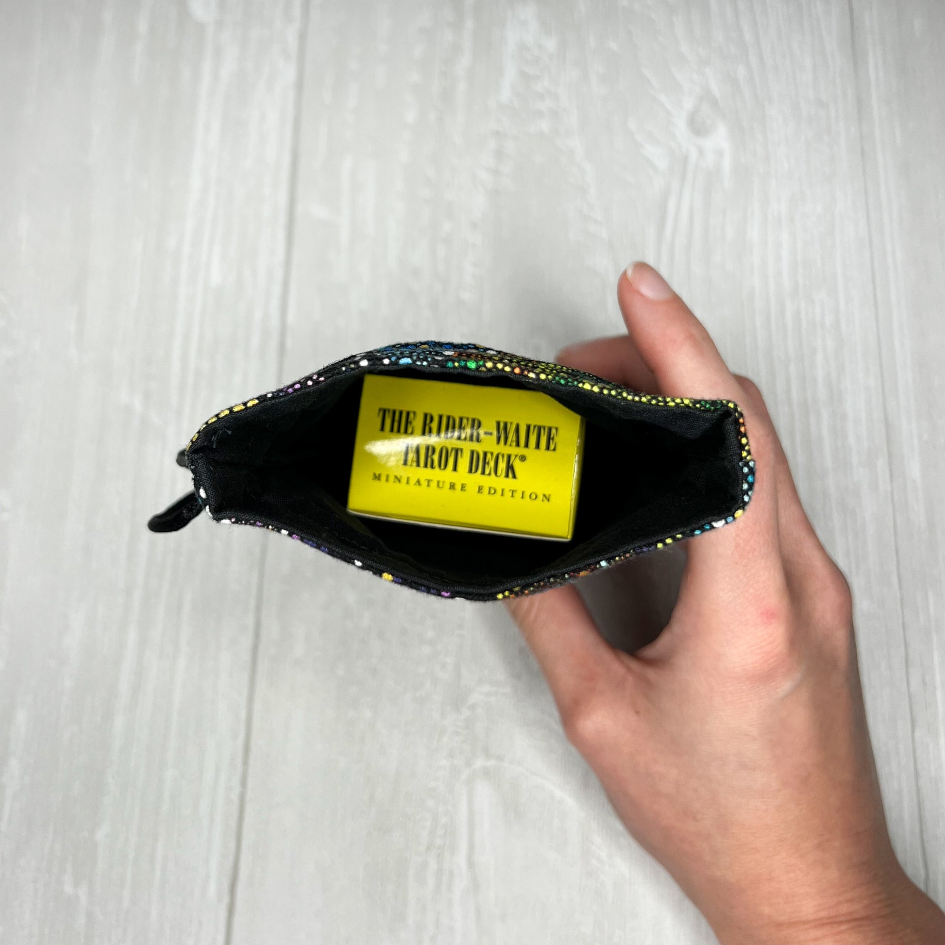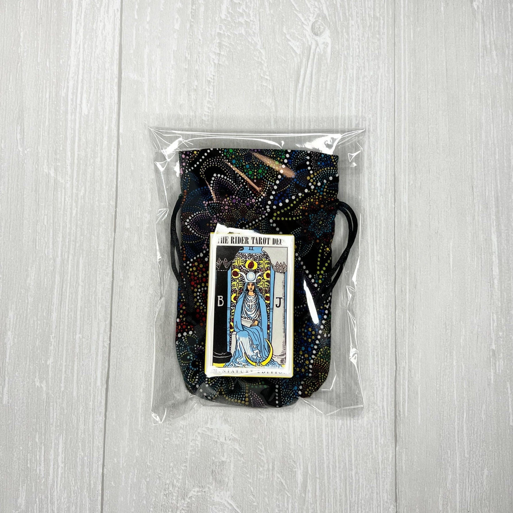 The perfect gift for tarot enthusiasts, novices or even yourself - our Miniature Rider-Waite Tarot & drawstring bag set! This duo features the classic Rider-Waite Tarot deck in a compact, travel-friendly size, allowing you to carry it's wisdom with you wherever you go. To complete this magical set, I've included a charming drawstring bag with a multi-colored geometric mosaic design. Ideal for safekeeping and transport.